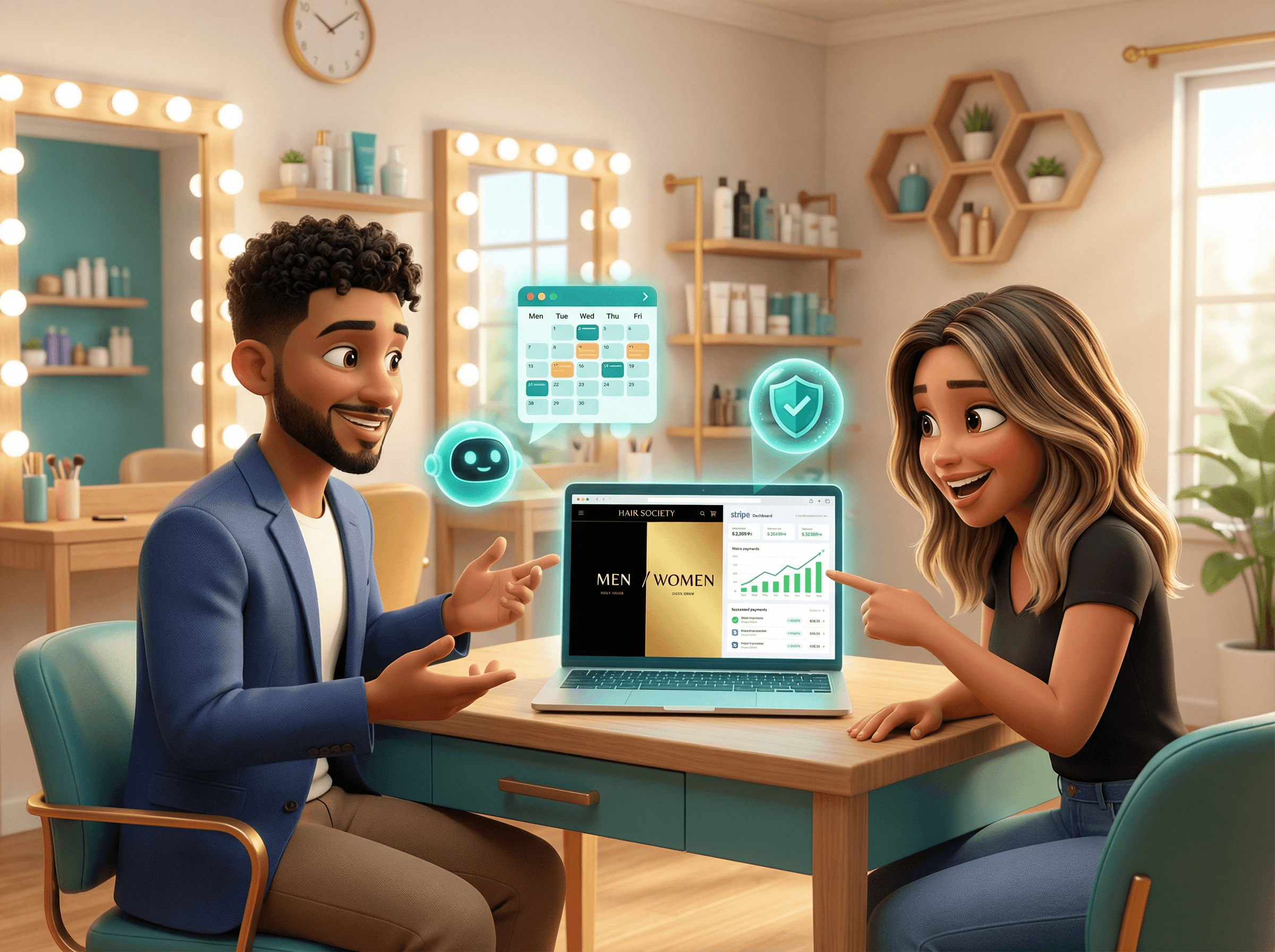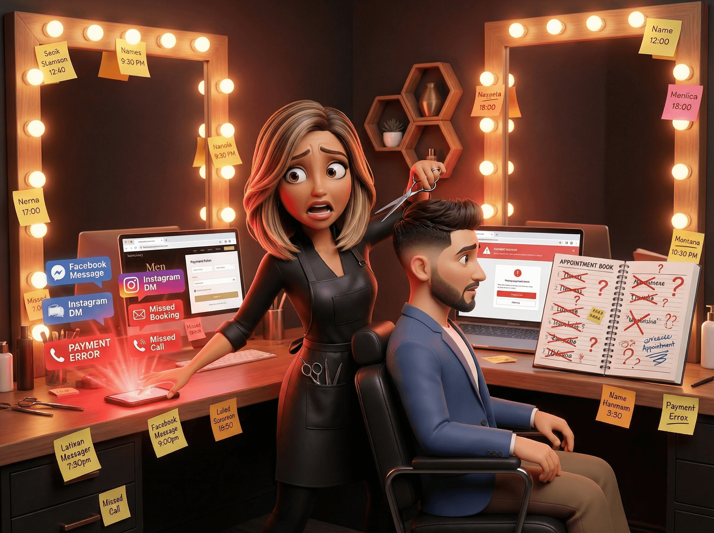 Full-stack web build for an established barbershop serving men and women. Custom frontend, Supabase backend, Stripe Connect payments, cybersecurity layer, and full marketing automation — so Carmen only has to cut hair.