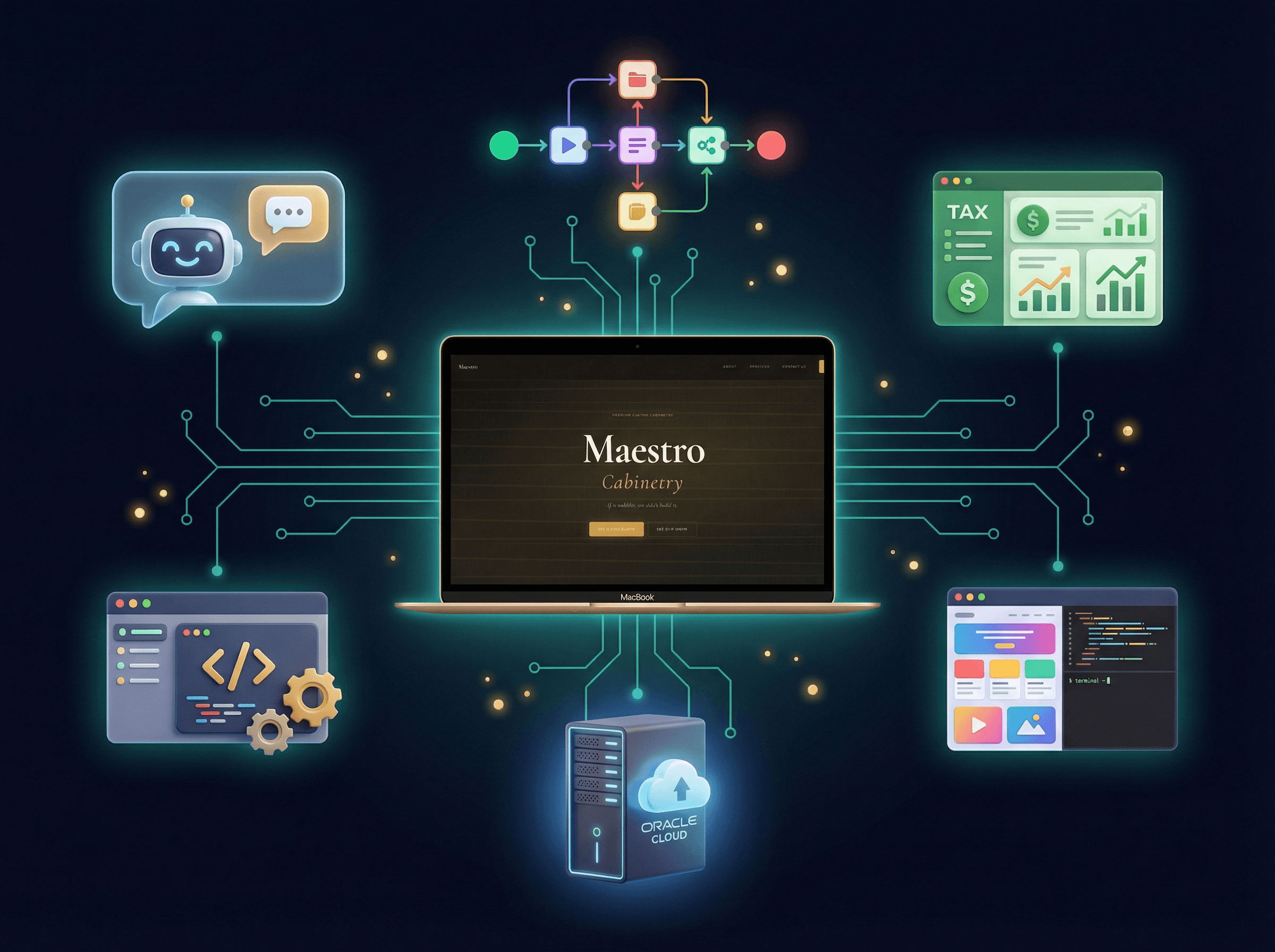 Maestro Carpenter is a highly skilled craftsman with no digital presence and no way to attract clients online. The business had no website, no marketing campaigns, no brand placement, and no cybersecurity or network infrastructure in place. Administrative paperwork was disorganized, making professional operations difficult to scale. On top of all this, the client was not a fluent English speaker — creating an additional barrier to navigating contracts, digital platforms, and vendor communications. There was no HR structure, no subcontracting system, and no clear path to growth.